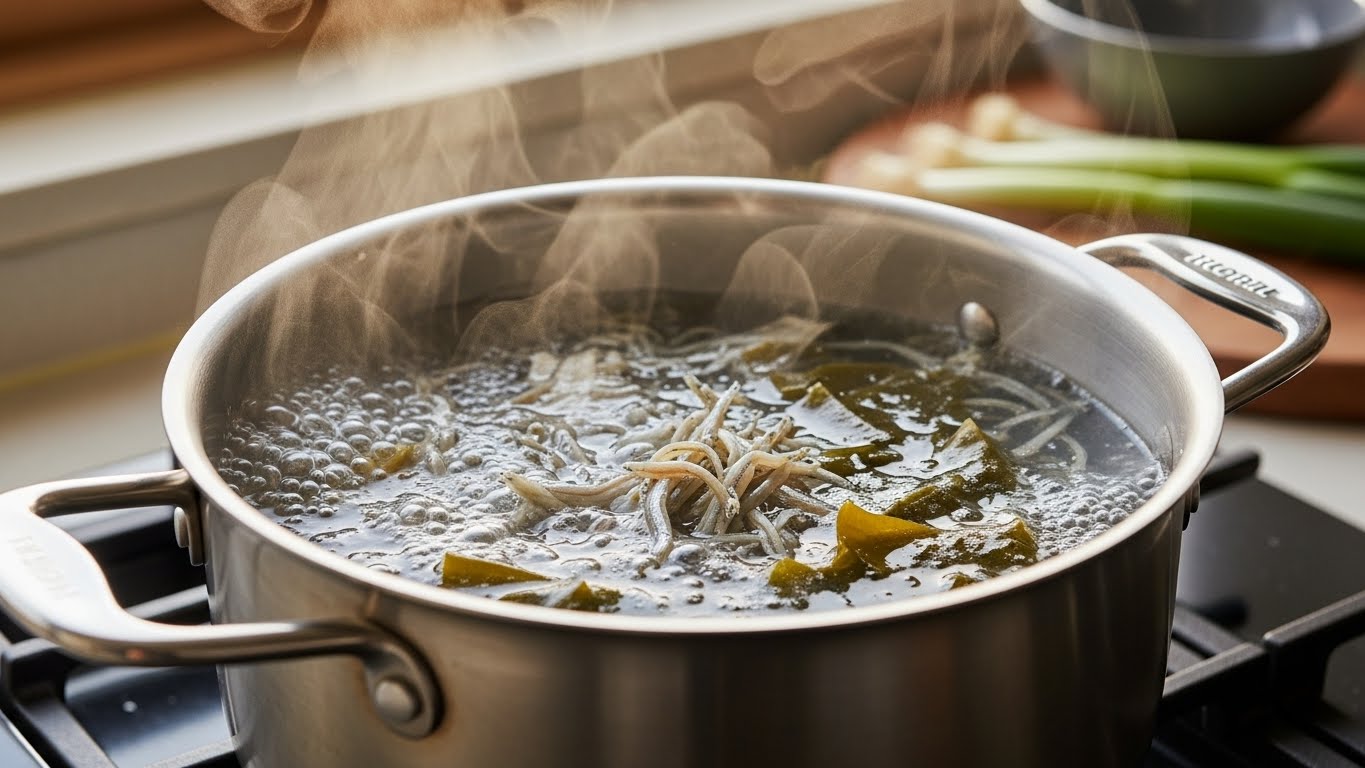 - 5분 이내 다시마 제거 (오래 끓이면 쓴맛!)